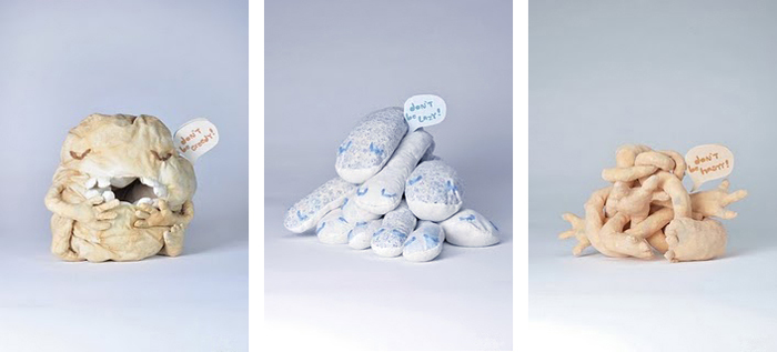 Three of the seven 'deadly sins' plushtoys: mr. gluttony, mr. sloth and mr. lust